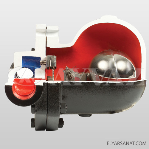 - با تخلیه کندانس، سطح آب کاهش مییابد و شناور پایین میآید و شیر را میبندد تا از خروج بخار زنده جلوگیری شود.